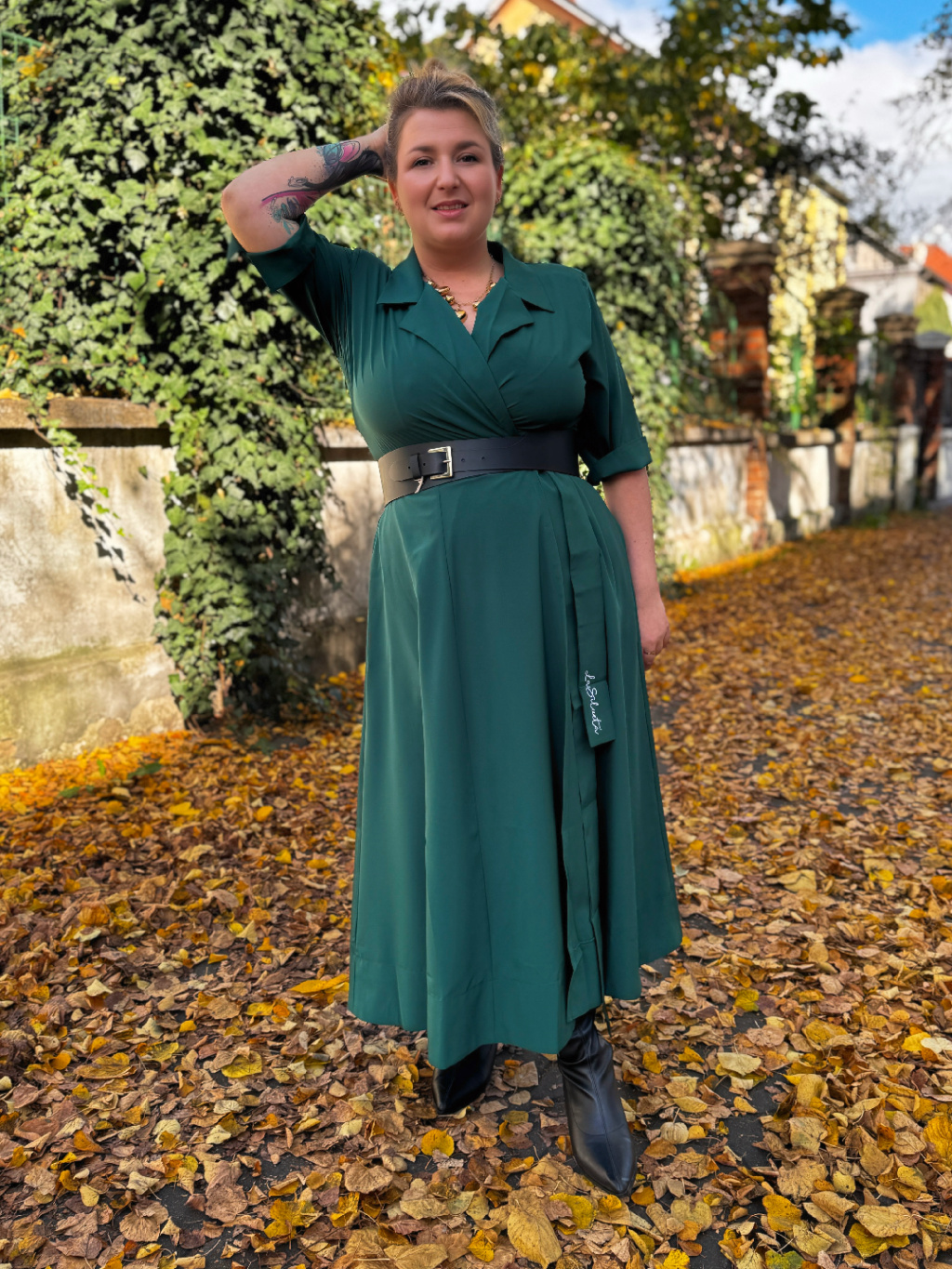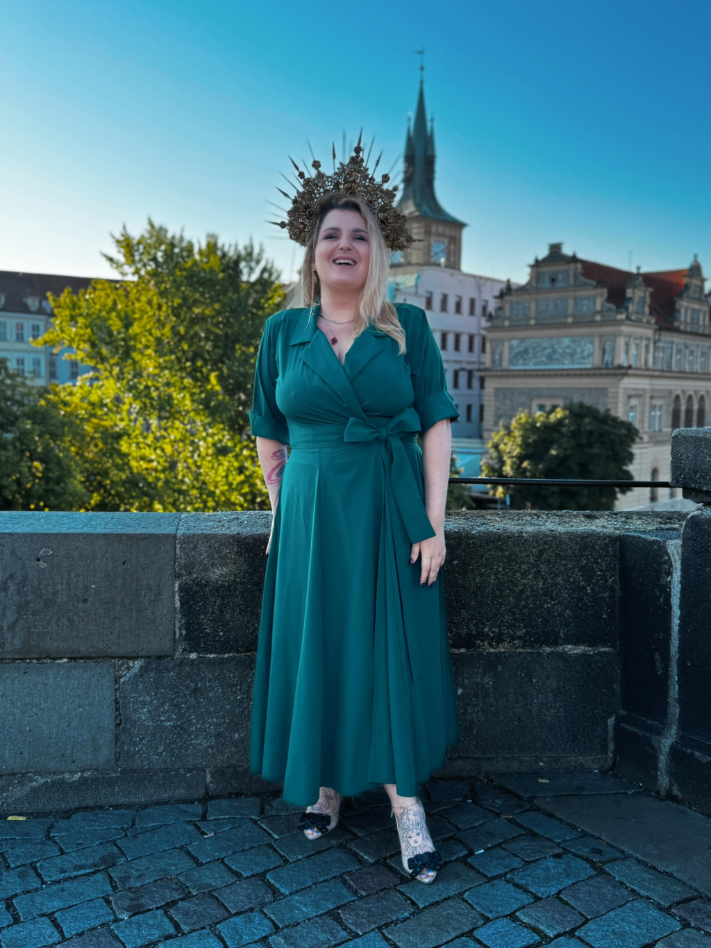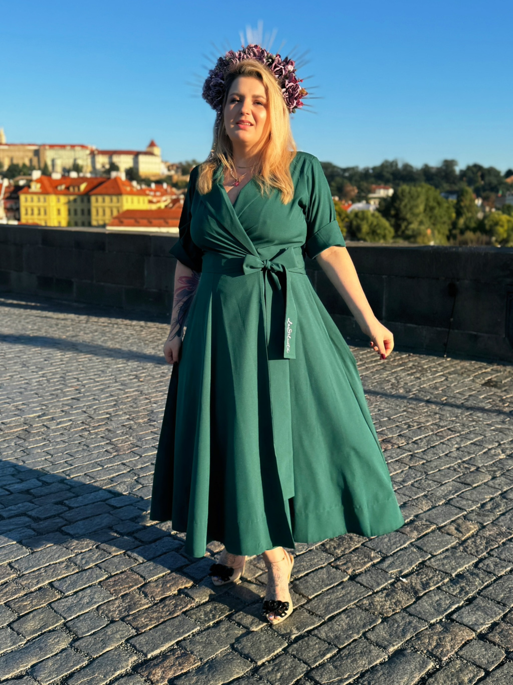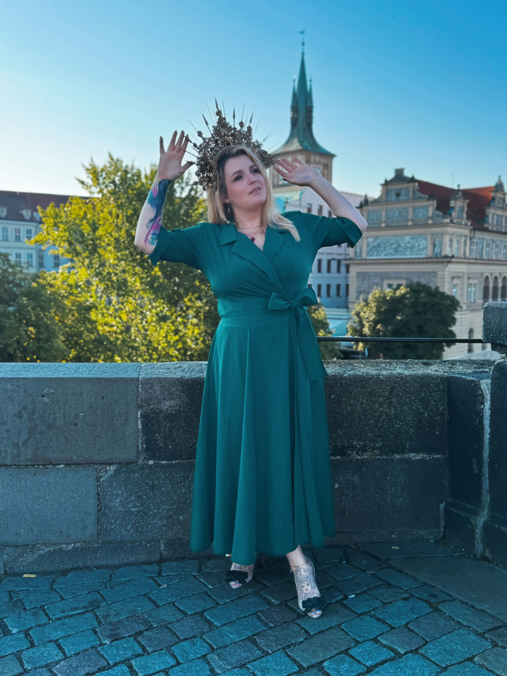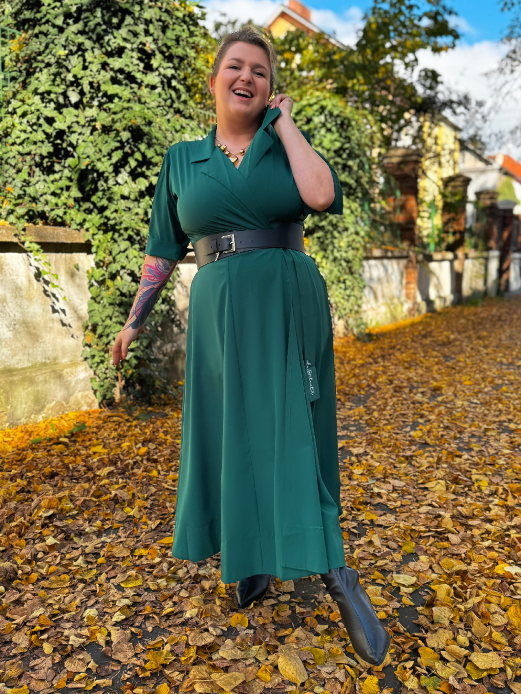 Praktičnost a styl: Díky kapsám a zavinovacímu střihu kombinují šaty Mirabel pohodlí s elegancí.