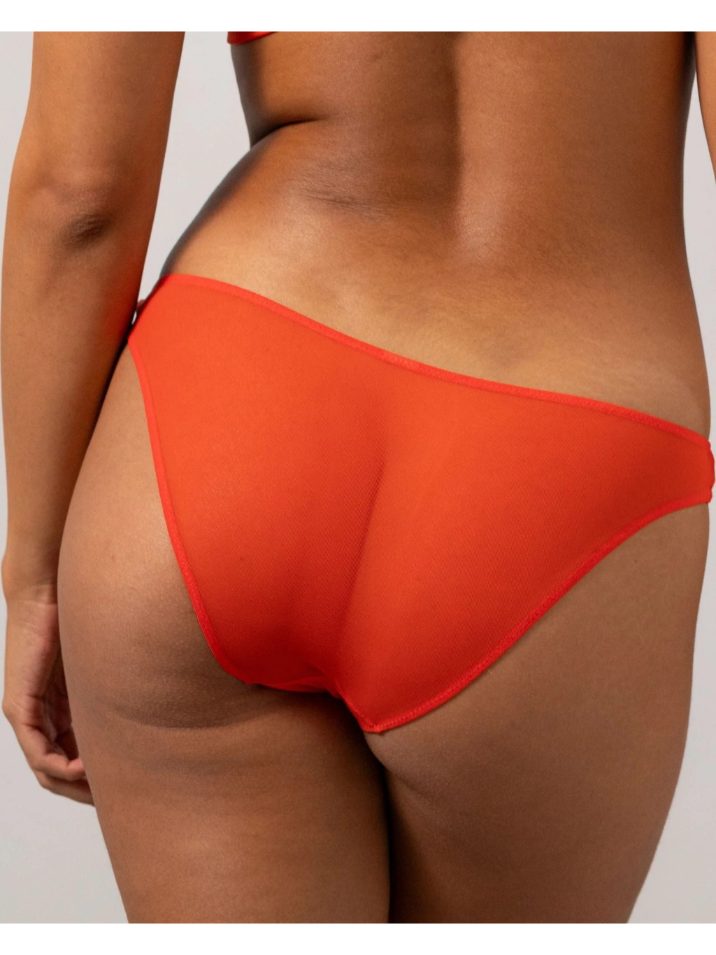 - Kalhotky se středním pasem a vysokým vykrojením v průsvitné síťovině