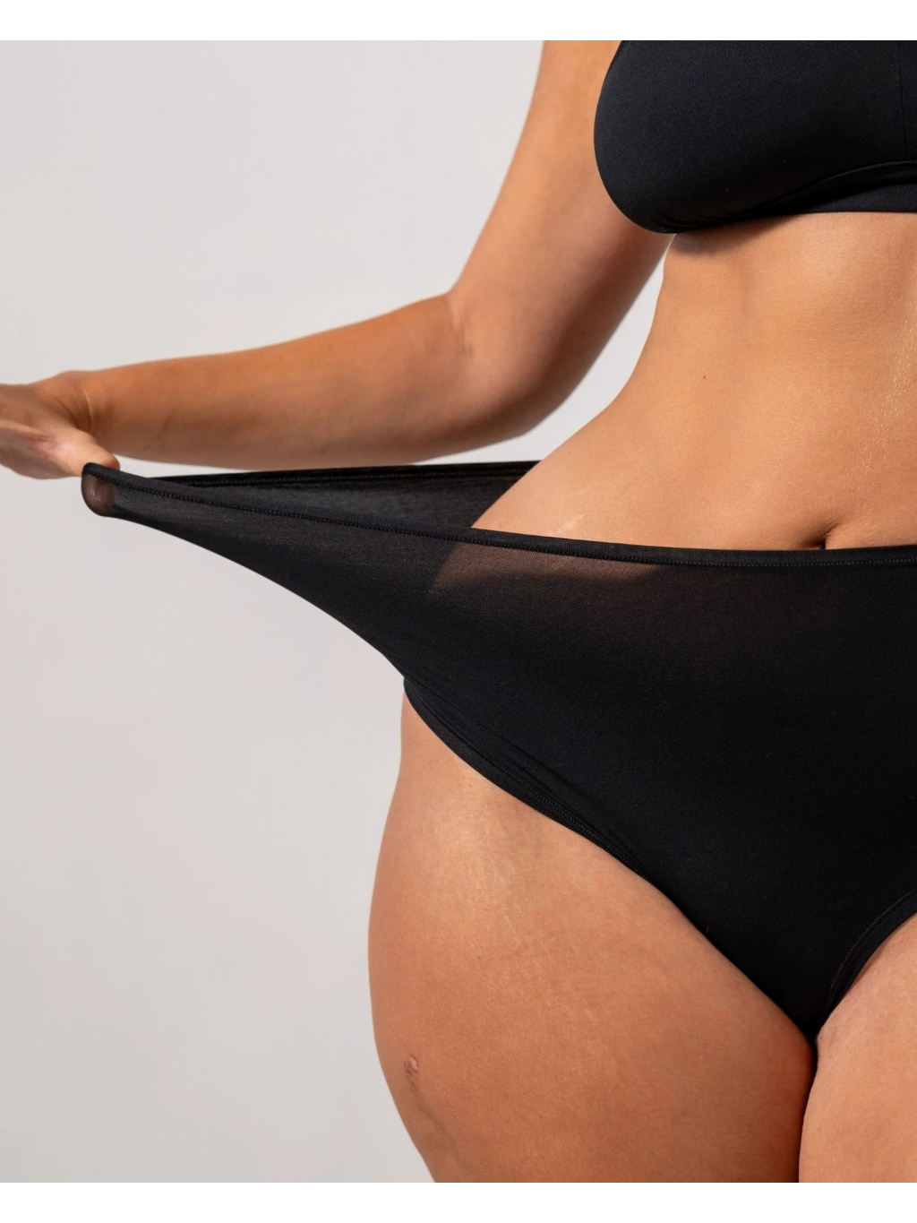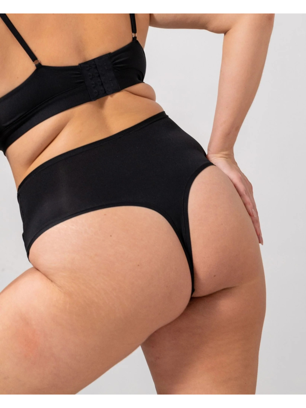 Vysoký pas a minimální zakrytí zadečku pro pocit, jako bys na sobě nic neměla